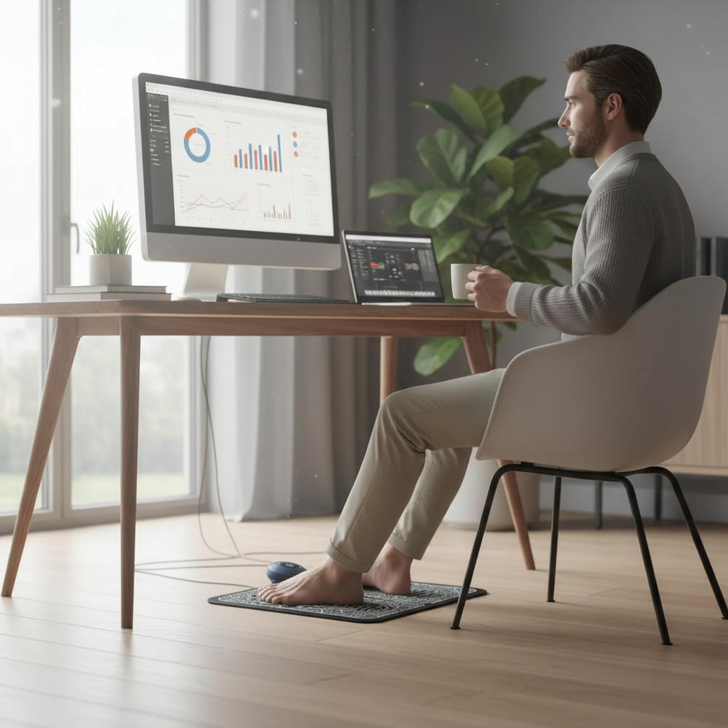 Imagine chegar em casa após um longo dia de trabalho e sentir seus pés cansados sendo revitalizados por uma massagem profissional. Nossa almofada massageadora trabalha profundamente nos músculos, aliviando tensões, reduzindo inchaço e proporcionando aquela sensação de leveza que você merece.